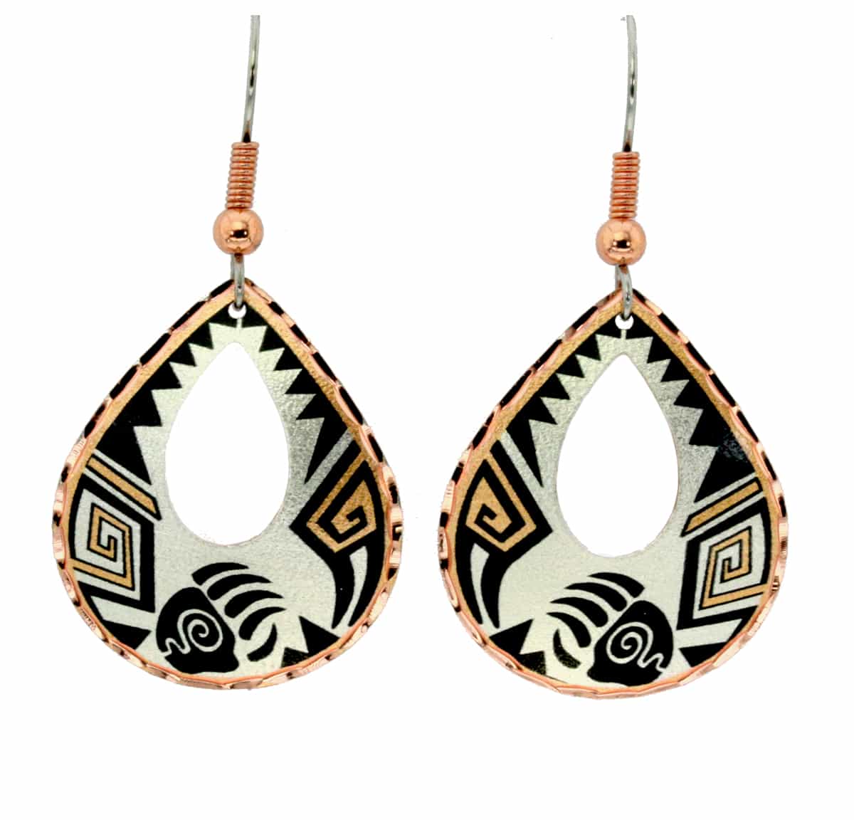 Copper bear paw earrings are created in fascinating Southwestern Navajo Indian designs using extraordinary techniques. The edge of these teardrop Southwestern bear earrings glitter like diamonds inserted because of the diamond cut by hand.