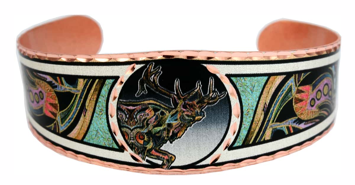 This Southwestern Elk artwork by Bob Coonts makes these handcrafted bracelets extraordinary. These elk bracelets are silver plated and diamond cut on copper to add sparkle to every outfit.
