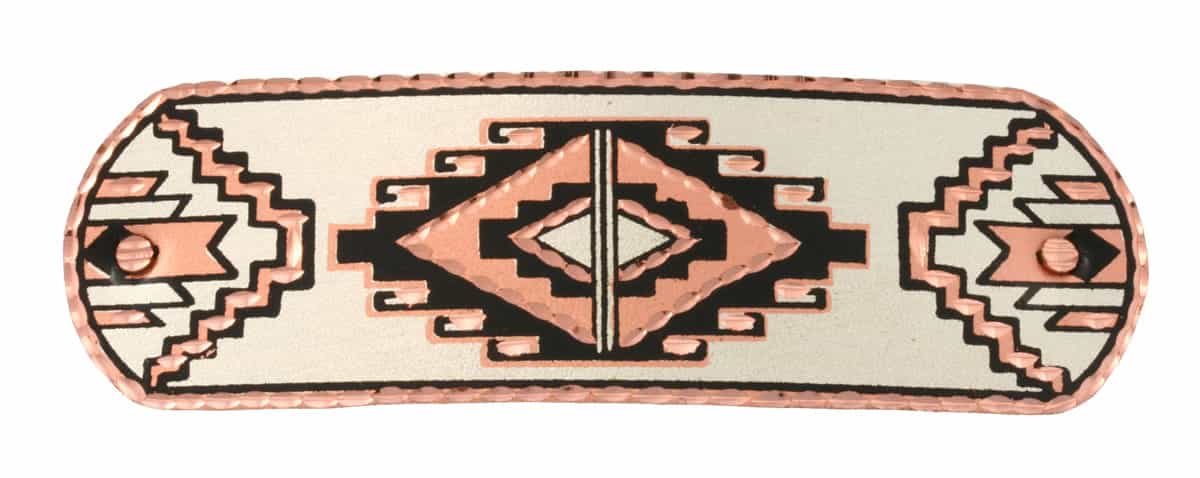 Native American Jewelry Hair Clips Hair clips are made in a rectangular shape of 22 mm x 91 mm ( about 0.87 x 3.6 inches ) in size. French barrette backings are securely riveted on the back of the copper hair clips.