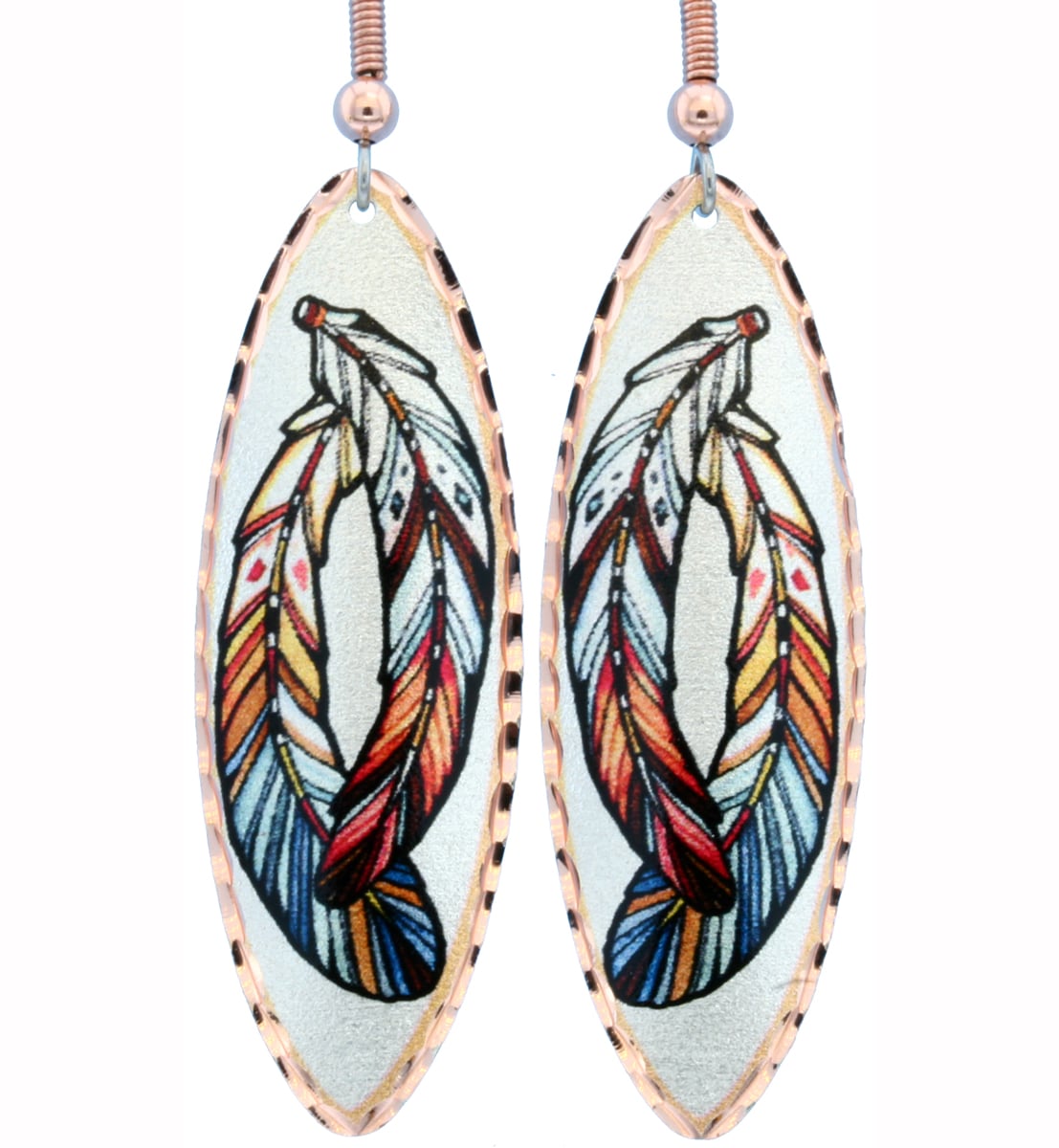 Teardrop feather art copper earrings are made from copper in colorful feather artwork. Buy feminine & fashionable elegant feather art earrings. Bright and shiny by diamond cutting by hand feather art jewelry earrings that are perfect for you.