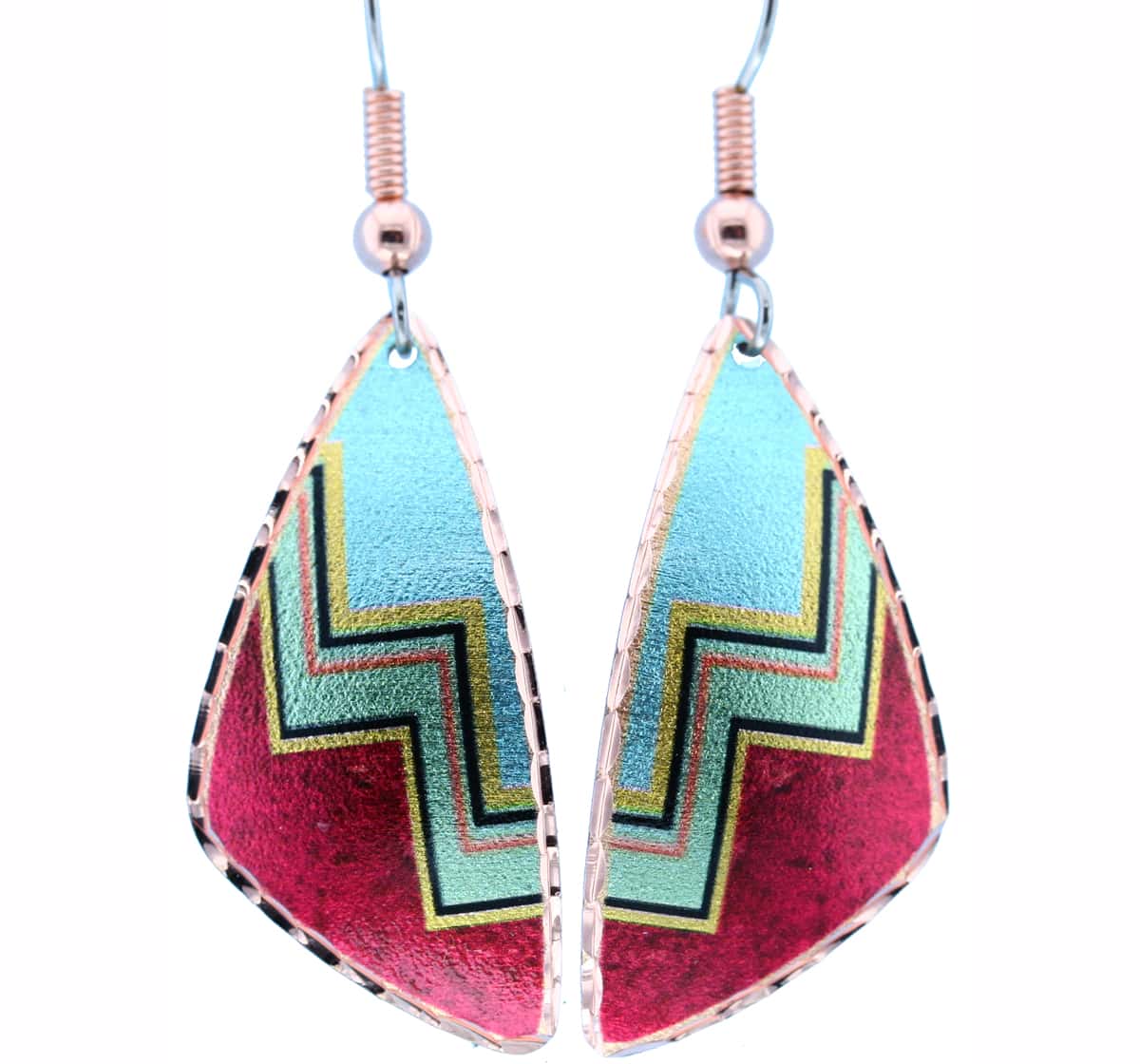 Triangle turquoise and red SW Native earrings handcrafted from copper in turquoise and red translucent colors that will add a touch of beauty to your look. Southwestern Native earrings will get you smiling every time you wear them. No polishing is required, just enjoy them. Earrings handmade from copper in a vibrant array of colors. Buy these Southwestern earrings that will make you feel attractive and will never go out of fashion.