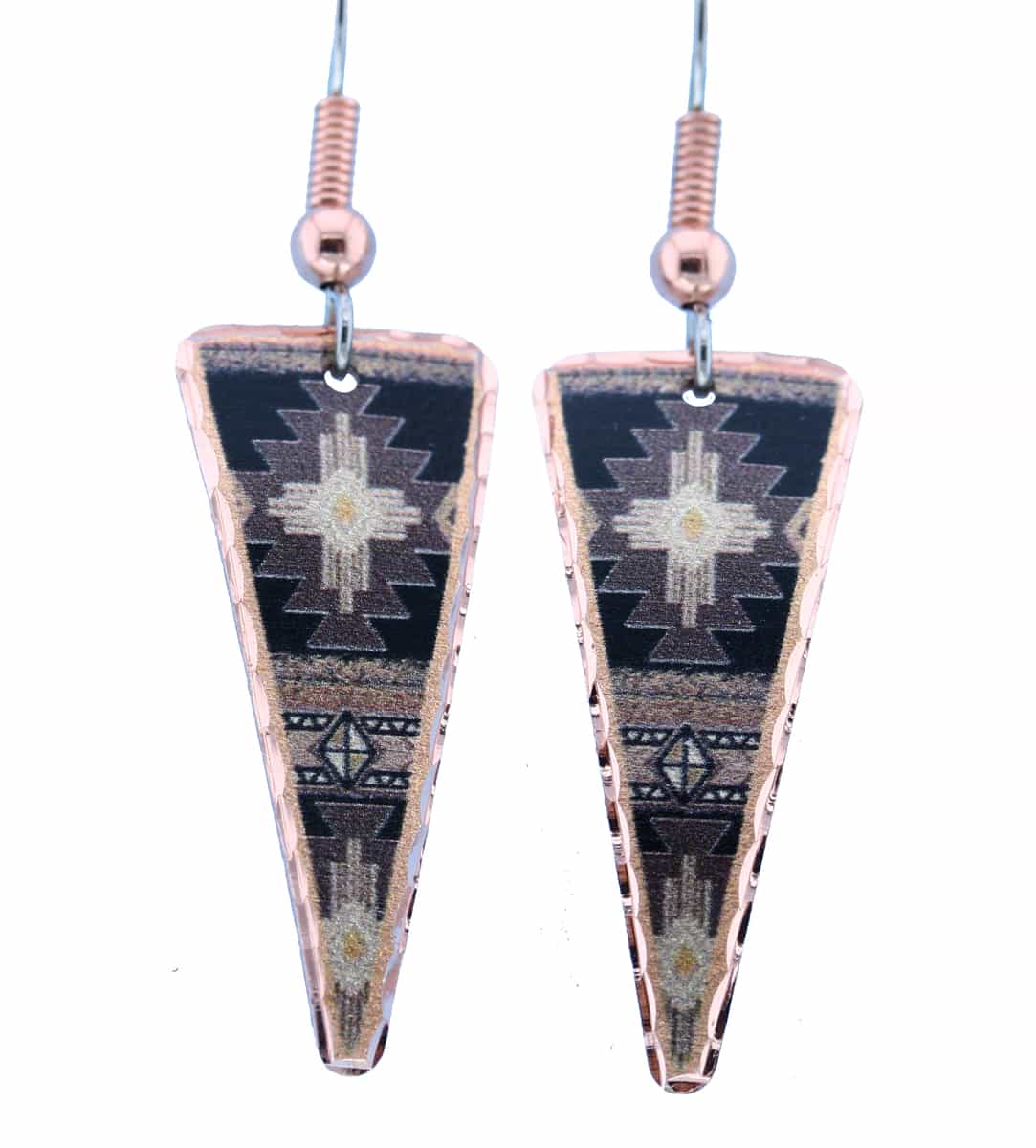 Buy Southwestern Triangle unique Native Zia earrings that will take everyone’s breath away. What sets handmade jewelry created by Copper Reflections apart is the creative designs and the high quality of our craftsmanship behind each piece.