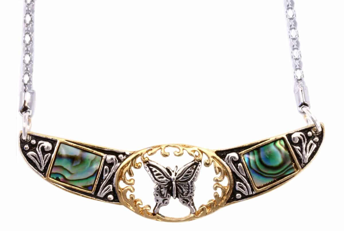 Unique chokers are available in this butterfly jewelry artwork that is two-tone gold and silver plated accented with abalone shell inlays. If you are looking for a special gift for your friends to show them how much you care, Copper Reflections has wide collections of unique designs to choose from.