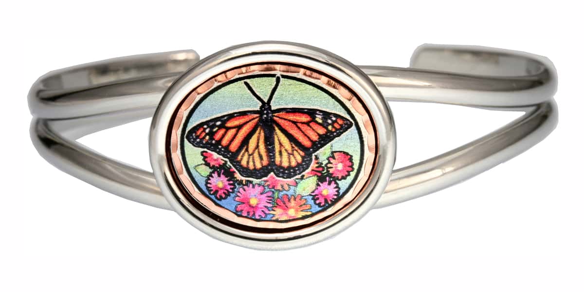 Wire bracelet handcrafted in most original butterfly and flowers in artwork with vivid colors. These unique bracelets for women are stylish and comfortable to wear.