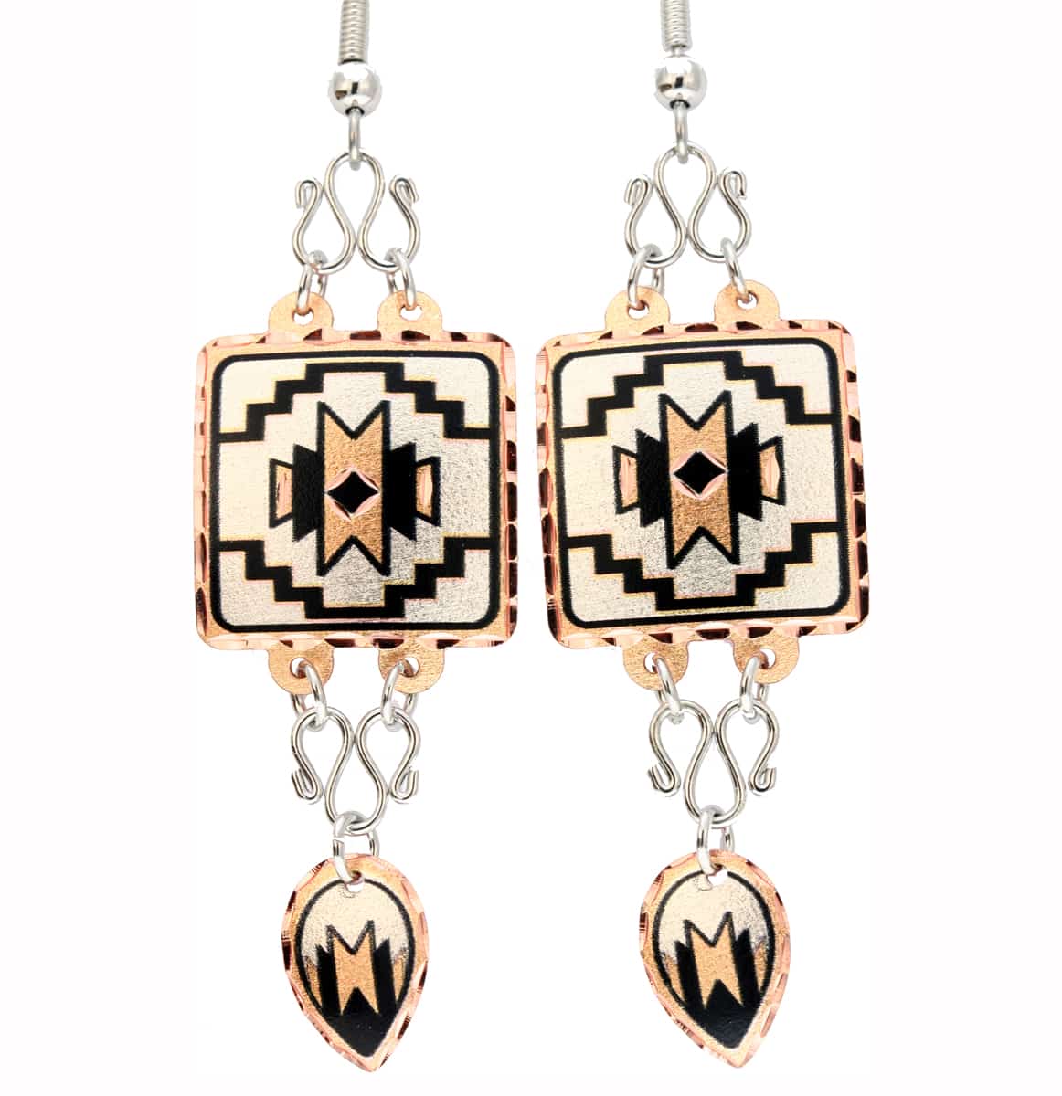 Unique SW Native wire earrings are handcrafted from copper, silver plated and diamond cut to sparkle brightly. Buy dangle Native earrings for every occasion. Nickel-free french hook hypoallergenic surgical steel ear wires make these gorgeous earrings safe and also fun to wear. No polishing is required as they are coated with quality acrylic finishes. You will love that these earrings are lightweight and comfortable to wear all day.
