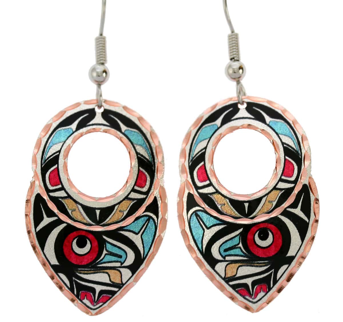 Colorful Native eagle totem earrings on this unique earring shape are sure to become a favorite.