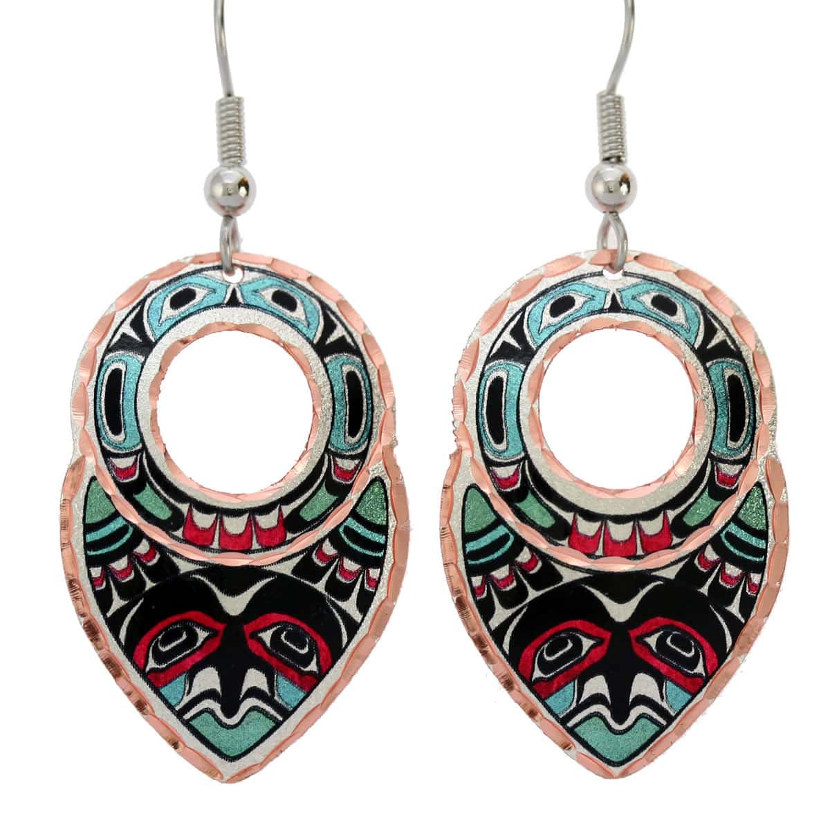 Handmade unique earrings with Northwest Native owl totem design. Native Northwest Indians believed that owls carried the souls of people who died and should therefore not be harmed, for when an owl was killed the the soul of the person would also die.