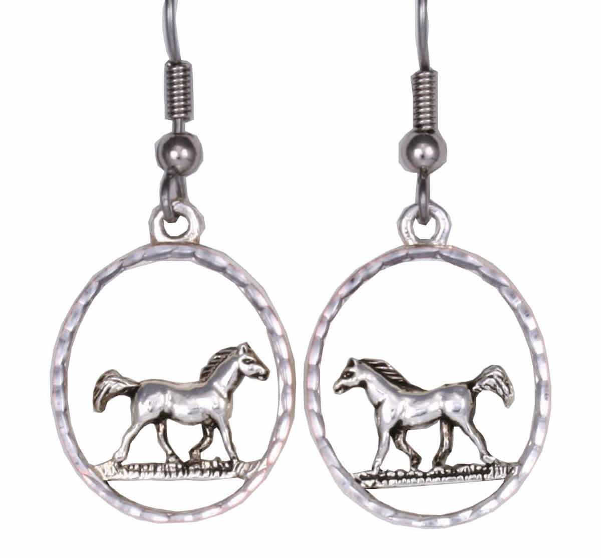 Cut out fashion horse earrings are created in silver plated running horse design and diamond cut around the border to sparkle. Buy awesome horse earrings to fit in perfectly with your western style. We use only the best ear wires for our handmade fashion earrings. Surgical steel hypoallergenic ear wires are the safest ear wires, especially for women who have sensitive skin.
