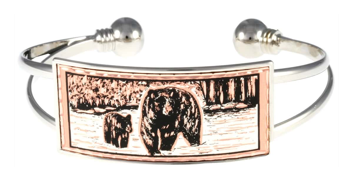 These unique bracelets are created in beautiful wildlife scene with a black bear and cub. Handmade bear bracelets will make a great addition to gift stores and trading posts in Canada and the United States.