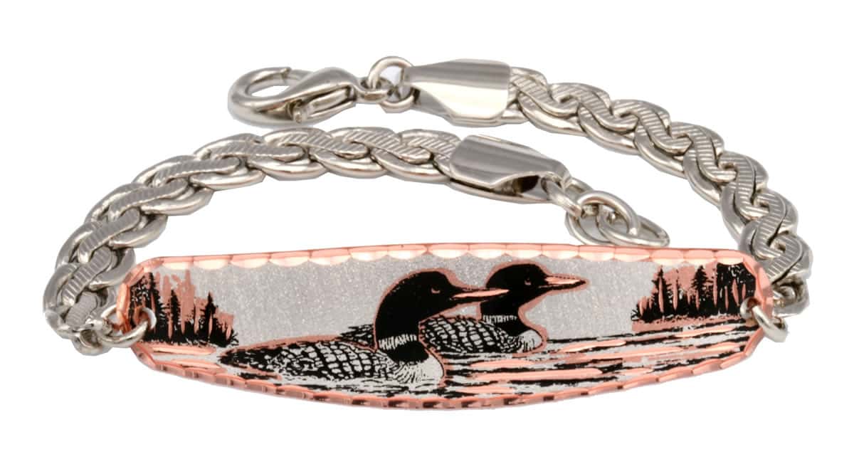 Copper chain bracelets are individually handcrafted in Canadian loon design. The loon is a symbol of the wilderness and no one will forget the enchanting call of the loon.